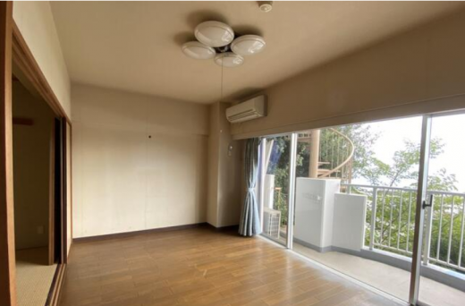 マンションベルエア 高台に建つ源泉かけ流し温泉大浴場付きリゾートマンション JR「熱海」駅より徒歩14分 「熱海」駅よりバスで約3分の立地 すぐ近くにバス停があります! バルコニーから水平線を望むリフォーム済みの美室 10階建2階部分1LDK!