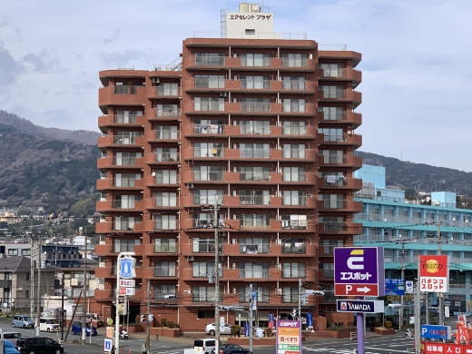 オーナーチエンジ エクセレントプラザ湯河原八番館 商業施設が密集する生活便利な湯河原町中心エリア 13階建4階部分 1LDK JR「湯河原」駅から徒歩約15分 吉浜海水浴場目の前 徒歩約2分! バルコニーから花火大会鑑賞! ラドン温泉の展望大浴場あり