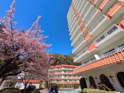 JR「熱海」駅より徒歩約6分の便利な立地。周りは車の通りもそれほど多くない住宅地で、静かな環境です。春には桜の花が満開になるアプローチ、自慢の源泉かけ流し温泉大浴場、屋内温水プールなど、共用施設も充実しています。管理体制も熱海でトップクラスと評判で安心です。