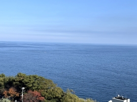 エレベーターホールから海を望みます。